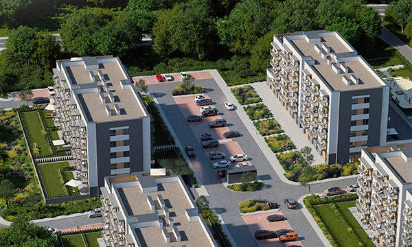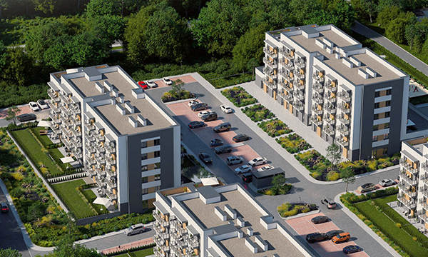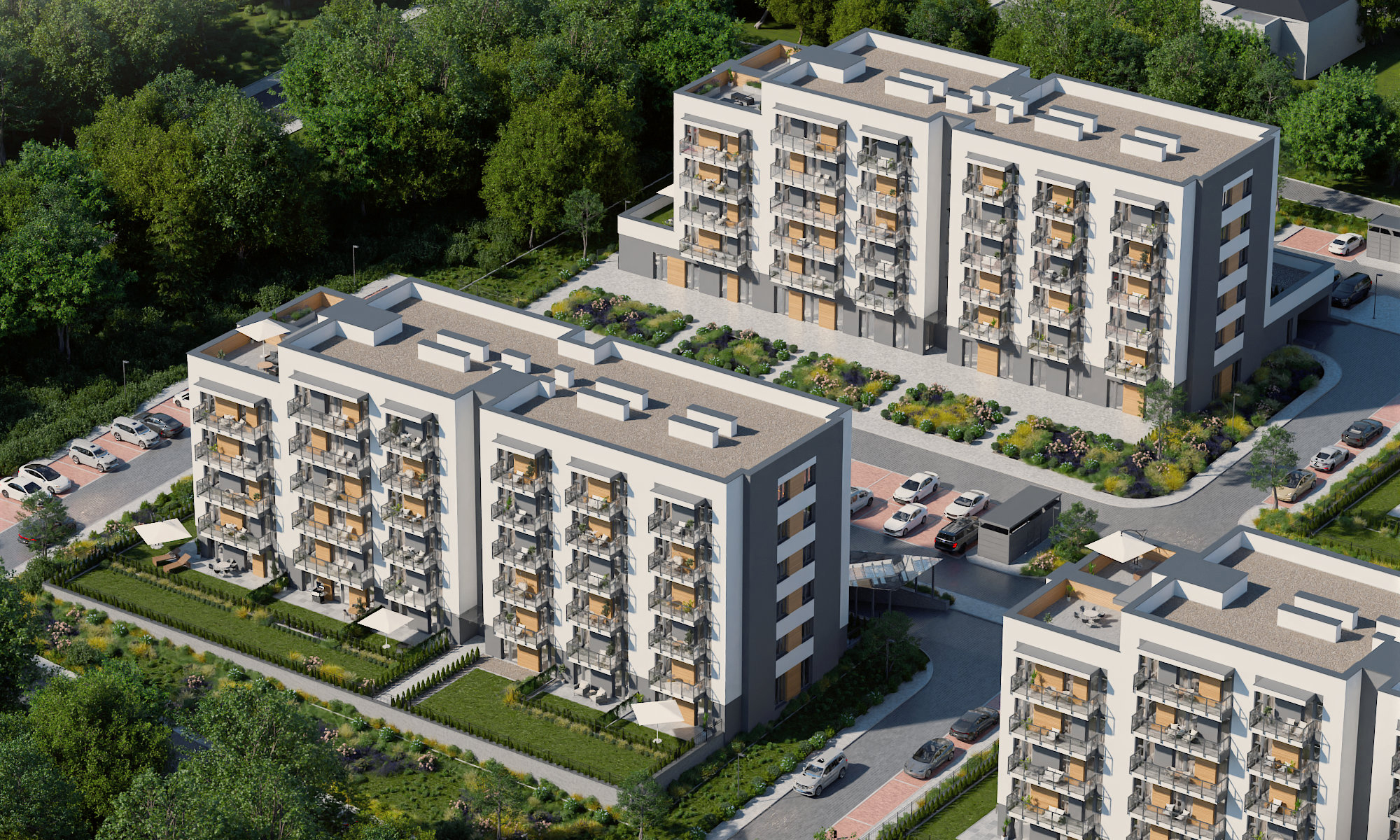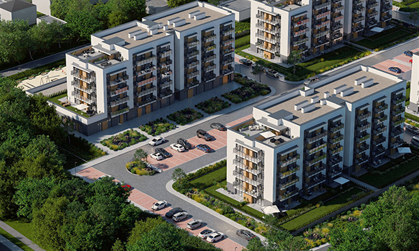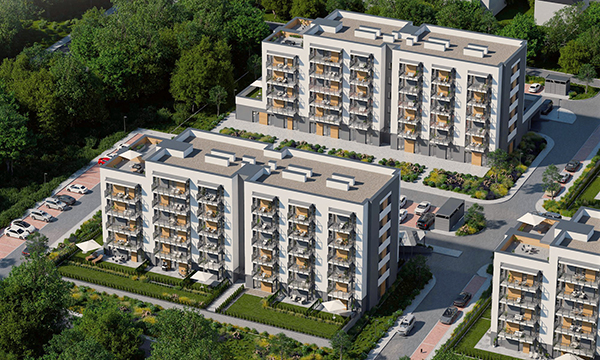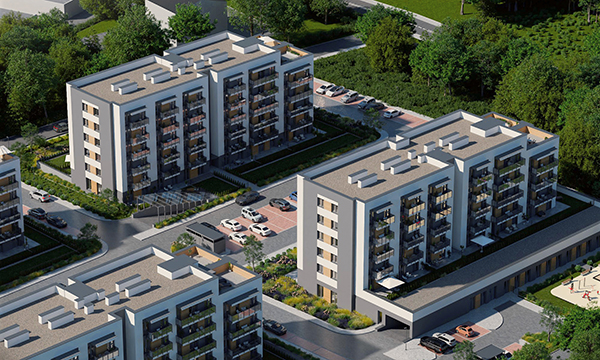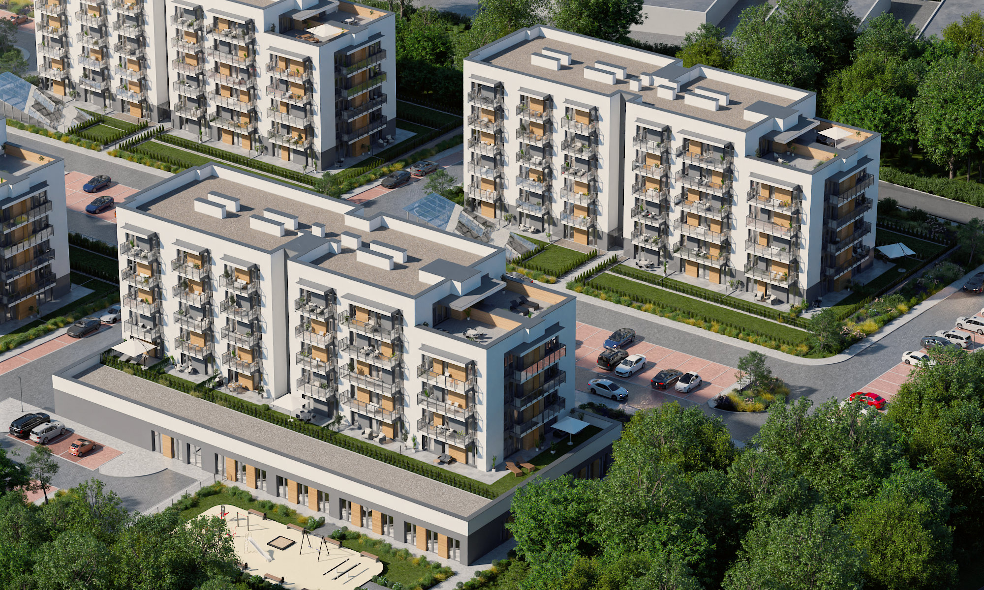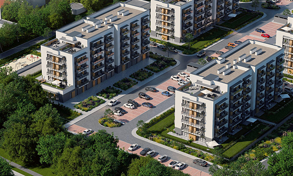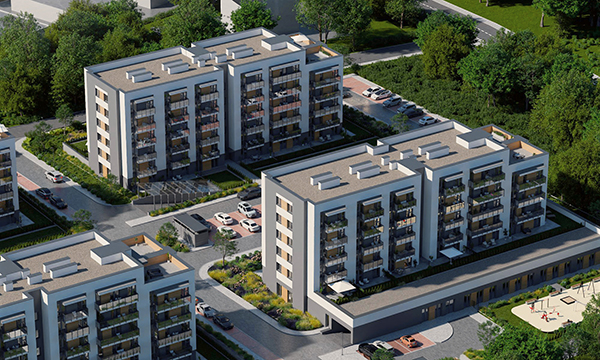 Osiedle Zielona Chorzowska w Rudzie Śląskiej jest nowoczesną inwestycją, zaprojektowaną z myślą o komforcie i estetyce. Pierwszy etap to dwa eleganckie bloki mieszkalne, wyróżniające się elewacją z elementami imitującymi drewno, które harmonijnie wpisują się w otaczającą zieleń. Starannie zagospodarowany teren obejmuje liczne nasadzenia, place zabaw, szerokie wygodne ulice oraz przestrzenie sprzyjające relaksowi mieszkańców.